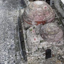 ОПИСАНИЕ: Запазената турска баня се намира на северния бряг. Тя се състои от преддверие с купол, коридор, водещ към централното помещение, което също има купол. От едната страна на преддверието има малко помещение с тухлен свод. Стените са иззидани от камък, а куполите са тухлени. Рамките на прозорците са от дялан камък и са оформени с двустъпална арабска арка. Отворът на входната врата е арковиден, изграден от тухли.